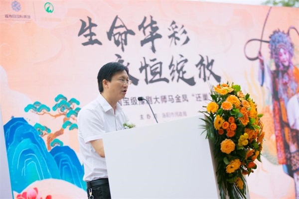 福寿园国际集团首席品牌官李经衡致辞 马金凤先生家属代表马泛浦致辞向所有来宾表达感谢,回顾了母亲不凡的百年人生。在洛阳,我母亲得到各级政府的关心和支持;在洛阳,她的艺术得到广大观众的拥戴,成为一个洛阳人使她引以自豪;在洛阳,她得到悠久深厚历史文化底蕴的滋养,使她在艺术上得到极大的发展,成为豫剧“五大名旦”之一,豫剧“马派艺术”创始人,创立了中国豫剧“帅旦”行当。“叶落归根”“魂归故里”。洛阳是我们这个家庭的第二故乡,因此,今天在这里为她树立纪念铜像,便具有更加特殊的意义,这既是对先母生前洛阳情怀的慰藉,也是对戏曲工作者与观众之间深厚感情的珍视。