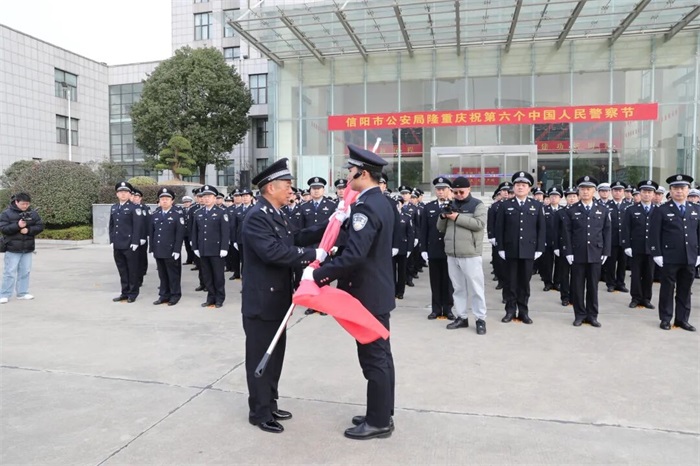 警旗猎猎,誓言铮铮。1月10日上午,信阳市公安局隆重举行升警旗仪式,热烈庆祝第六个中国人民警察节,激励全警传承使命担当,忠诚履职尽责,续写警营荣光。市政府副市长、市公安局党委书记、局长刘磊出席仪式并致辞。