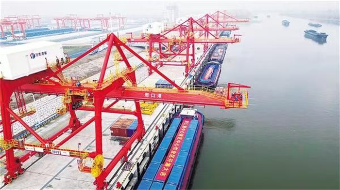 硬件能级的全面升级,让周口港重塑了中原内河港口的新标杆。在这里,智能化程度达到省内领先水平,中心作业区作为河南省首个实现规模化全流程自动化作业的内河集装箱码头,配备了远程操控双小车集装箱岸桥、双悬臂自动化轨道式龙门起重机、北斗高精度定位无人驾驶智能集卡(IGV)等先进装备,智能码头操作系统(TOS)与设备控制系统(ECS)无缝集成,5G专网与工业物联网全域覆盖,实现了从船舶配载、装卸船、水平运输到堆场收发的全流程无人化、自动化闭环作业,作业效率较传统模式提升30%以上,保障24小时全天候、高精度作业。信息化系统的优化升级,则构建起以数据驱动、全景可视、智能协同为核心的信息化中枢,通过数字孪生技术1:1复刻港区三维动态模型,创新应用“港-航-闸一体化联合智能调度平台”,打破信息壁垒,实现船舶“云端预报、智能排序、远程调度、顺畅过闸”,平均车船在港停留时间压缩至4小时以内,大幅提升了航道通航效率与船舶周转率。配套功能的不断完善,让周口港超越了传统装卸服务的局限,打造集口岸通关、多式联运、供应链服务于一体的综合物流平台,海关监管查验区、公用型保税仓、保税物流中心(B型)等设施齐全,“抵港直装”“船边直提”等新型通关模式全面推行,“一单制”铁水、公水多式联运深度发展,为企业提供了“一次委托、全程负责”的全程物流解决方案。 得天独厚的合作优势,让周口港成为投资兴业的黄金洼地。航运优势方面,沙颍河作为淮河最大支流,是国家高等级航道网的重要组成部分,周口至省界段为三级航道,常年水位稳定,全年无枯水期、结冰期,具备通行3000吨级单船、1万吨拖队货轮的能力;通过沙颍河-淮河-京杭大运河、江淮运河等通道,形成了四条高效出海路径,江淮运河的通航更使进入长江主航道的距离缩短300公里,用时节约1/3;截至2025年底,累计开通集装箱航线43条,其中国内航线24条、国际外贸接力航线19条,业务触达全球140多个国家和地区,实现“箱通世界、货运全球”。 区位优势方面,周口港坐拥“承东启西、连南贯北”的优越地理位置,地处淮河生态经济带与黄河流域生态保护和高质量发展战略交汇地带,是中西部承接产业转移示范区与中原—长三角经济走廊的重要支点,依托郑州国际性综合交通枢纽,可与郑州航空港、中欧班列无缝对接,高效衔接“空铁公水”多式联运网络,辐射范围覆盖中西部九省市。