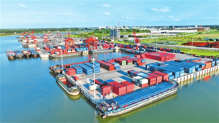 二、港兴城旺:黄金水道筑枢纽 开放平台聚势能 港口是对外开放的门户,是招商引资的基石。周口临港开发区的崛起,始终与周口港的发展同频共振。坐落于沙河、颍河、贾鲁河三川交汇之处的周口港,承袭千年漕运的厚重底蕴,坐拥通江达海的“黄金水道”,是国家《国家综合立体交通网规划纲要》明确建设的全国36个内河主要港口之一,亦是河南省重点打造的港口型国家物流枢纽,如今已成为全省乃至淮河流域规模最大、靠泊能力最强的内河港口,成为中原地区连接长三角、融入“海上丝绸之路”的核心战略支点。 2026年,在十五五开局的关键之年,周口港交出了一份亮眼的成绩单:2025年完成货物吞吐量5543.48万吨,同比增长6.5%,占全省内河港口货物吞吐量的85%以上;集装箱吞吐量17.54万标箱,同比增长7.5%,实现了吞吐量的稳健双增长,枢纽功能持续增强,为临港开发区的招商引资工作奠定了坚实的物流基础。这份成绩的背后,是周口港在战略定位、硬件设施、航线网络等方面的持续发力与全面突破。