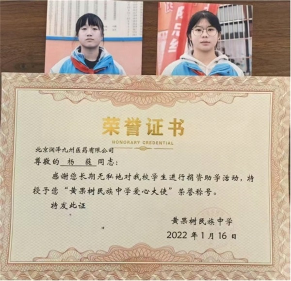 杨蕤热心助学一例 作为一名共产党员,杨蕤始终将党建融入企业发展。他组织党员开展学习活动,让党的先进思想成为企业文化的底色,党员们在工作中以身作则,带动全体员工共同进步。企业发展壮大的同时,杨蕤也没有忘记回馈社会,多次参与公益捐赠,每年为贵州黄果树民族中学的两名学生做支助,给贫困地区送去药品和医疗物资,助力改善当地医疗条件。 2021年,郑州市遭遇特大暴雨灾害,洪水肆虐,家乡的灾情牵动着杨蕤的心。他迅速组织力量,调配资源,紧急采购生活物资与医疗用品运往灾区。在原阳县等地,他捐赠的物资帮助受灾群众度过了最艰难的时刻,灾后又向贫困家庭捐助数万元物资,彰显出一位企业家的大爱情怀与社会担当。 2025年春节,杨蕤带领公司员工看望在北京务工的家乡人和固始县驻京工作组,送去慰问品与新春祝福,浓浓的乡情在寒冬中传递,诠释着他对家乡的深深眷恋。
