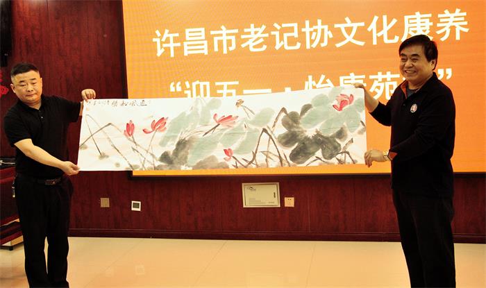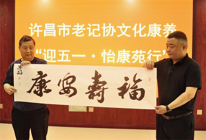 “五一”国际劳动节前夕,许昌市老新闻工作者协会在老顾问、许昌市人大常委会原副主任白喜臣带领下,组织河南中州书画院许昌分院和许都广场舞操队专程来到许昌市老记协文化康养基地、全国首批城企联动普惠养老试点先进单位、河南省医养老结合示范单位、位于鄢陵县的许昌市怡康苑养老院,送书画,送歌舞,送爱心,与这里的老人们欢聚一堂,共叙友情,同庆佳节,共享文化康养的乐趣。