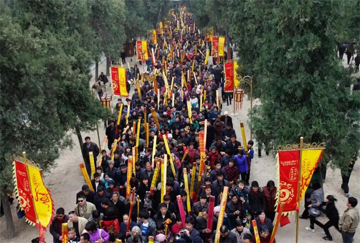 太昊陵的官方祭祀,始于春秋,兴于唐宋,盛于明清。唐代天宝六年,朝廷始定三皇祭祀,伏羲位列其中,春秋两祭,用少牢之礼;宋代,宋太祖赵匡胤将伏羲祭祀地明确为陈州,升格为太牢之礼,设守陵户,禁樵采,派官员专职祭祀,皇家祭祀制度正式确立;元代,以三皇为医药之祖,通祀全国,祭祀礼仪沿袭旧制;明代,朱元璋恢复伏羲“百王之先”地位,钦定太昊陵为全国唯一伏羲祭祀专地,规范祭祀礼仪,春秋仲月,遣使致祭,御祭制度日趋完善;清代,沿袭明制,康熙、乾隆、雍正等帝王多次遣官御祭,御祭规格更高,规模更大,礼仪更盛。 据《陈州府志》记载,明清两代,帝王御祭太昊陵达52次之多,每逢登基、册立、平叛、祈福、灾荒、丰年,皇帝必遣钦差大臣,携太牢之礼,亲制祝文,远赴陈州,祭拜始祖,祈求国泰民安、风调雨顺、五谷丰登、天下太平。这些御祭,是国家层面的信仰传承,是皇家对始祖的至尊敬仰,更是华夏民族信仰薪火的官方延续。 御祭之日,礼仪森严,盛况空前。钦差大臣提前斋戒三日,沐浴更衣,率河南巡抚、陈州知府等地方官员,身着朝服,手持朝笏,步入陵庙。太牢之礼,牛、羊、豕三牲齐备,香烛、美酒、五谷、蔬果供品丰盛,排列整齐。祭祀仪式分迎神、初献、亚献、终献、送神五个环节,乐舞齐作,钟鼓齐鸣,三跪九叩,祝文诵读,声震陵庙,庄严肃穆。每一个环节,都恪守古礼;每一个动作,都饱含虔诚;每一篇祝文,都承载着家国情怀,彰显着皇家祭祀的庄严与神圣。 现存太昊陵御祭碑7通,碑文记载着帝王的祈愿与感恩:洪武四年朱元璋御祭碑,感念伏羲庇佑,夺得天下;康熙二十一年,平定三藩之乱,遣官告祭;乾隆二十四年,平定回部叛乱,遣使祈福克捷。这些御祭碑,是太昊陵皇家祭祀的珍贵实物,是研究明清历史、祭祀文化的重要史料,一字一句,皆是信仰的传承,皆是薪火的延续。 皇家御祭,彰显着太昊陵的正统地位与至尊荣耀;民间朝祖,更让信仰的薪火绵延千年,生生不息,成为太昊陵最鲜活、最动人的沧桑印记。每年农历二月初二至三月初三,为期一个月的太昊陵古庙会,是中国最古老、规模最大、历时最长的民间庙会,被誉为“天下第一庙会”。2008年,庙会单日参拜人数达82.5万,被载入吉尼斯世界纪录,成为华夏民间信仰的盛大狂欢,是太昊陵千年香火最生动的见证。 仲春二月,冰雪消融,万物复苏,龙抬头之日,庙会正式启幕。豫、鲁、皖、冀、苏等周边省份的百姓,扶老携幼,跋山涉水,涌向太昊陵。香客们身着盛装,手持香烛,肩挑供品,一路风尘,只为拜谒人祖爷,祈求平安吉祥。陵庙之内,香烟缭绕,钟鼓齐鸣,人声鼎沸,摩肩接踵,红绸带挂满枝头,祈福牌连成一片,成为红色的海洋,烟火之气直冲云霄。 庙会之上,非遗民俗精彩纷呈,传承千年,是远古祭祀文化的活态传承。担经挑,古老的祭祀巫舞,2011年被列为河南省级非遗,舞者身着黑衣,肩挑花篮,舞步轻盈,吟唱着伏羲女娲的传说,舞姿古朴,意蕴深远,是远古巫舞的活化石;泥泥狗,太昊陵独有的民间泥塑,以黄胶泥捏制,造型古朴,色彩艳丽,有九头鸟、人头狗、娃娃鱼等百余种造型,被誉为“真图腾、活化石”,是远古图腾崇拜的遗存;布老虎,虎头圆眼,憨态可掬,源于伏羲虎图腾崇拜,寓意驱邪避灾、健康长寿,是庙会最受欢迎的吉祥物。 压缩馍、芦苇画、刘氏剪纸、陈州小吃……庙会之上,商品琳琅满目,民俗表演精彩纷呈。跑旱船、踩高跷、唱大戏、舞龙舞狮,锣鼓喧天,热闹非凡。百姓们烧香祈福,求子、求福、求平安、求学业、求健康,每一张脸上都洋溢着虔诚与期盼。从白发苍苍的老人,到稚气未脱的孩童,从本土百姓,到海外侨胞,亿万羲皇子孙,跨越山海,汇聚于此,寻根问祖,缅怀始祖功德。 每月农历初一、十五,太昊陵亦有盛大祭祀,香客云集,香火鼎盛。千百年来,无论战火纷飞,还是岁月流转,太昊陵的香火从未断绝,祭祀从未中断。香火袅袅,诉说着千年不变的信仰;钟声悠悠,传承着华夏民族的根脉;人流如织,彰显着始祖文化的强大凝聚力。 从帝王御祭的庄严肃穆,到民间朝祖的烟火喧嚣;从春秋两祭的礼制传承,到一月庙会的全民狂欢,太昊陵的祭祀文化,历经千年沧桑,融入民族血脉,成为凝聚华夏儿女、传承文明基因的精神纽带。这份信仰的薪火,始于对始祖的敬仰,盛于民族的认同,代代相传,生生不息,成为太昊陵千古传承中最温暖、最动人的力量。 四、 碑刻古树,文脉薪火留痕 太昊陵,不仅是祭祀圣地、建筑瑰宝,更是一座石刻博物馆,一片古树秘境。陵内碑刻如林,古树参天,285通碑刻,117株古树名木,历经千年风雨,依旧巍然挺立,默默诉说着太昊陵的千年沧桑,传承着华夏文明的文脉薪火,成为太昊陵最厚重、最珍贵的历史印记。 伏羲碑林,依八卦方位而建,汇集了启功、沈鹏等当代书法名家精品三百余幅,篆隶楷行草,诸体兼备,笔墨酣畅,气势恢宏。碑林正门匾额,由启功先生亲笔题写,先生身患眼疾,数易其稿,敬书而成,尽显对人祖的敬仰。碑刻之上,或赞颂伏羲功德,或吟咏陵庙风光,或记录历史变迁,一字一句,皆是文化传承,皆是民族情怀。从上世纪八十年代初,淮阳文化界前辈袁占琴、何仰羲等人四处奔波,征集书法精品,历经数十载,终成此碑林,成为太昊陵文脉传承的重要载体。 陵内最珍贵、最具历史价值的,莫过于御祭碑。明代洪武四年,朱元璋御祭碑,碑文记载着朱元璋感恩伏羲庇佑、夺得天下的史实,字迹苍劲