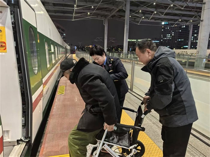 无论是深夜站台,乘务人员协力搀扶行动不便的轮椅旅客安全上下车;还是车厢之内,细心的女乘务员化身“临时妈妈”,温柔安抚哭闹的婴儿;亦或是为重点旅客提前准备轮椅、开辟绿色通道,D232/229次列车的工作人员早已将这些帮扶行动化为工作常态。他们用专业的素养和温情的服务,为老弱病残孕等重点旅客筑起了一道坚实的安全屏障,让冰冷的钢铁列车充满了家的温度。