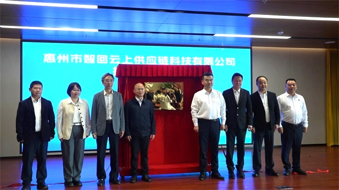 仪式现场,惠州市智谷实业有限公司与惠州国渠云上产业园管理有限公司完成合作签约,双方围绕供应链科技、产业运营、数字化服务等领域达成深度协同。随后,陈勇、罗显波、蔡瑛、邓利宏、张松、潘育权、吴武生、李青阳八位嘉宾共同为惠州市智回云上供应链科技有限公司揭牌,标志着新公司正式投入运营。